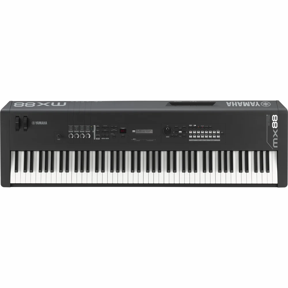 The Yamaha MX88 is the top-of-the-line MX series keyboard synthesizer featuring a beautiful GHS Graded Hammer action keyboard and authentic Concert Grand piano sound. In addition to this stunning piano performance engine, the MX88 offers over 1000 sounds taken directly from the popular Motif range of professional workstation keyboards.